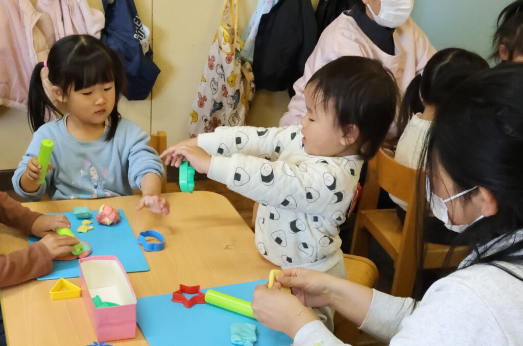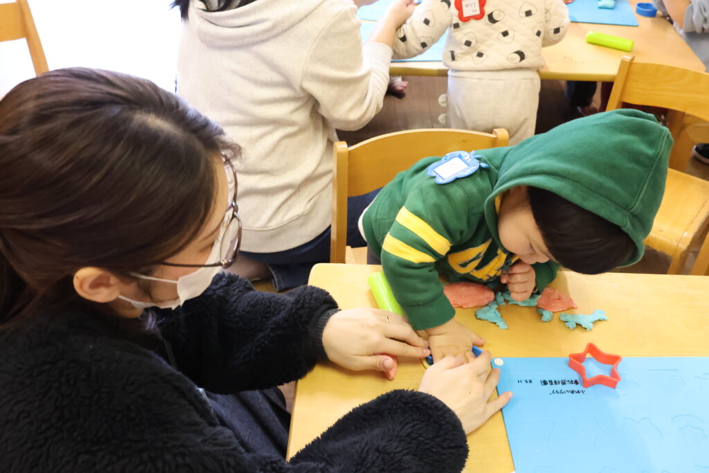 出来上がると嬉しそうに、手で触れながら、ちぎったり、丸めたり、片抜きで形を作ったりしていた子ども達。