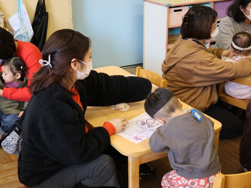 マーカーを使って保護者の方と一緒に描くのが楽しそうでした!