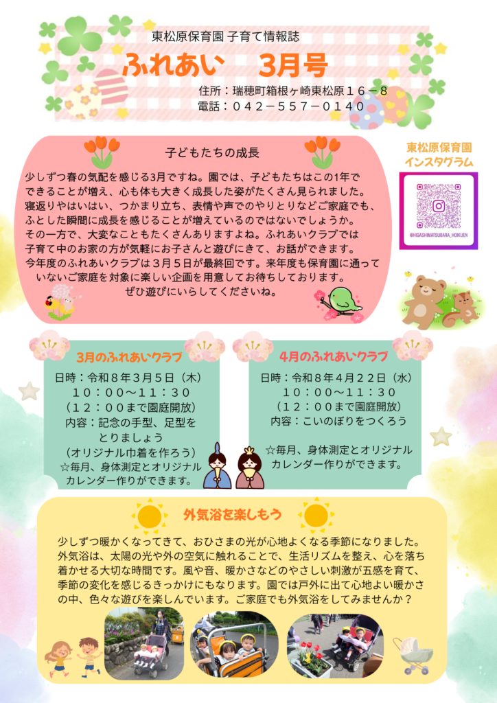 オリジナルカレンダー作り、身体測定、園庭開放も行います。