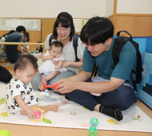 今日の保育所体験に1組2名の方が参加してくださいました。0歳児クラスに入って頂き、園児と保育士が関わる様子を見て頂いたり、園児と一緒に遊び、保育園体験を楽しみました!マットのお山のぼりやトンネルくぐり、トランポリンで体を動かしました。お子さんもハイハイで移動したり、笑顔も見られました!お母様には、離乳食の形態を見て頂いたり、園児が食べる給食試食もして頂きました。